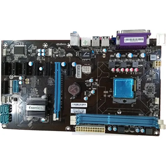 Intel’in üçüncü nesil Core serisi ve ilgili soket modelini kullanan Pentium ve Celeron işlemcileriyle değerlendirilebilen ürün, HM76 yonga setinden gücünü alıyor. İki adet DDR3 bellek slotu bulunan ve 1600 MHz frekansına kadar olan belleklerin takılabildiği anakart, Intel işlemcilerde yer alan grafik işlem birimlerine, belleğin bir bölümünü atayabiliyor. Bu sayede modelin arka panelinde bulunan HDMI ve VGA portlarından, monitör ya da televizyon gibi görüntü birimlerine, tatmin edici çözünürlüklerde görüntü alınabiliyor. Bir tanesi PCIe x16, diğer yedi tanesi PCIe x1 formunda olan toplam sekiz adet PCIe slotuyla güçlendirilen ESonic HM76 65 BTC Intel HM76 1600MHz Soket 988 anakart, aynı anda sekiz ekran kartının bağlanabilmesini mümkün hale getiriyor. Riser olarak isimlendirilen PCIe uzatma aparatlarının monte edilerek, ekran kartlarının farklı bir platforma sabitlenmesiyle hazırlanabilecek olan ve tam anlamıyla bir mining rig’e dönüşecek sistem, ESonic anakart ile güvenle kurulabiliyor. Dört adet SATA 3 portuyla zenginleştirilen modele, gereksinim duyulan miktarda sabit disk veya SATA altyapılı SSD’ler takılabiliyor.