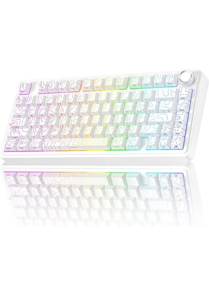 AULA F75 MEKANİK RGB TKL SEİYA SWİTCH KABLOSUZ MAKROLU HOT SWAP KLAVYE DESENLİ BEYAZ