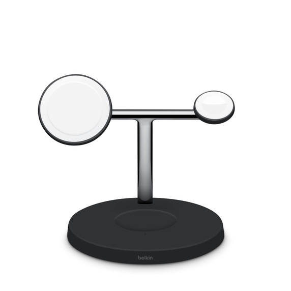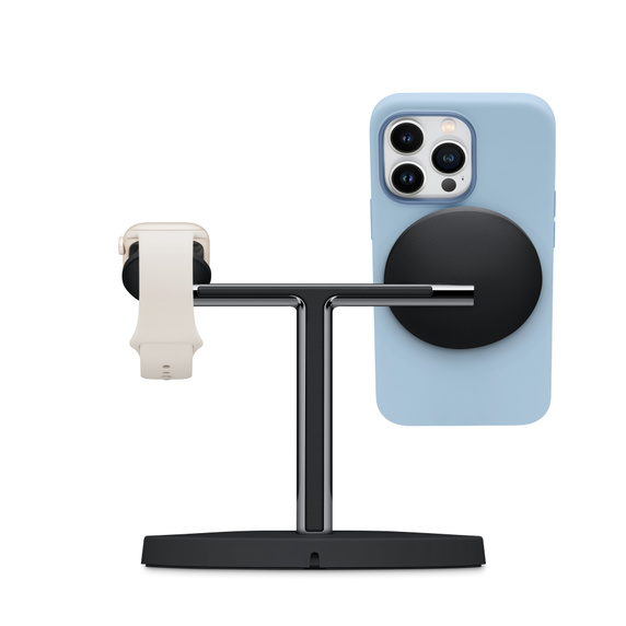 iPhone 12 veya daha yeni model iPhone’unuzu 15 W’a kadar güçle şarj edebilen MagSafe kablosuz stant; Apple Watch Ultra ve daha yeni modeller ve Apple Watch Series 7 ve daha yeni Apple Watch modelleri için yeni Manyetik hızlı şarj modülüne; AirPods’unuzu ya da AirPods Pro’nuzu kablosuz olarak şarj etmeniz için Qi platformuna sahip.