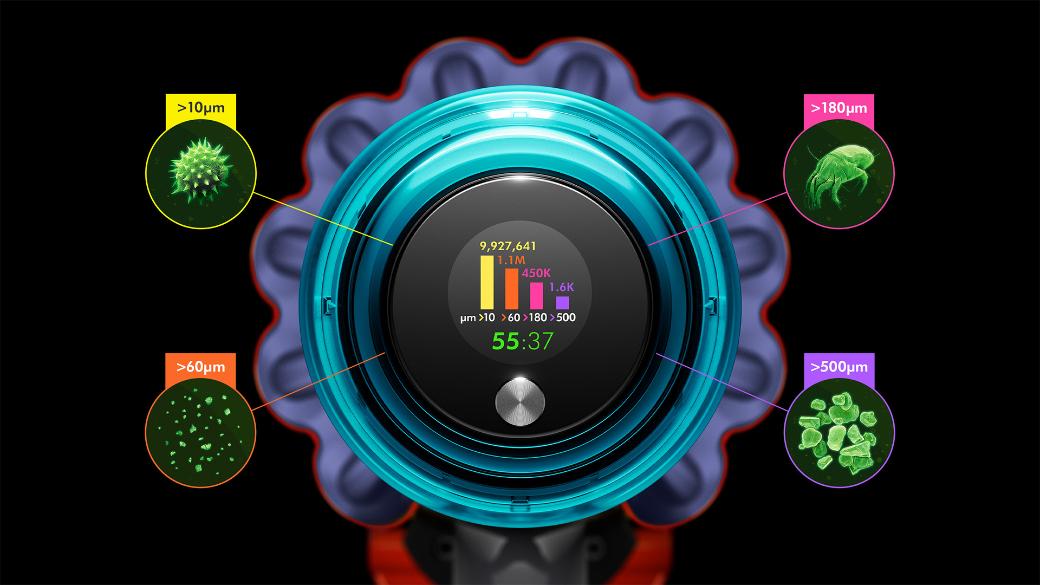 Güçlü ve hafif dijital motor, mikroskobik tozları ve büyük kirleri yakalamak için dakikada 125.000rpm'e kadar döner.