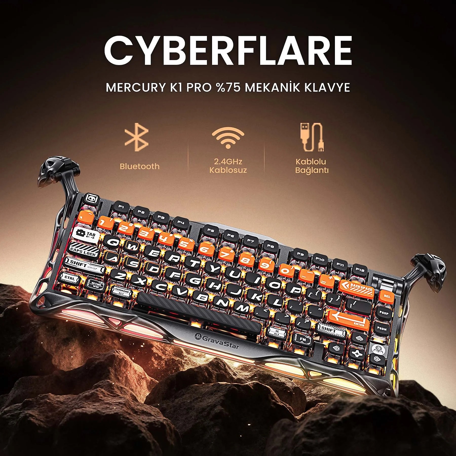 Mercury K1 Pro oyuncu klavyesi, dayanıklılığı ve karakteristik tasarımıyla öne çıkan üst düzey bir oyuncu klavyesi modelidir. Bu setin içinde GravaStar Mercury K1 Pro RGB Kablosuz Mekanik Gaming Klavye ile birlikte GravaStar Mercury X RGB 32K DPI Optik Gaming Mouse, Kablosuz, Magnezyum Alaşımlı, Programlanabilir 5 Tuşlu, yer almaktadır.