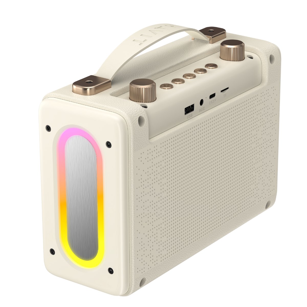 Havit SK823BT Mikrofonlu Bluetooth Hoparlör – Retro Tasarım, Kablosuz BT V5.3 Karaoke - Bej