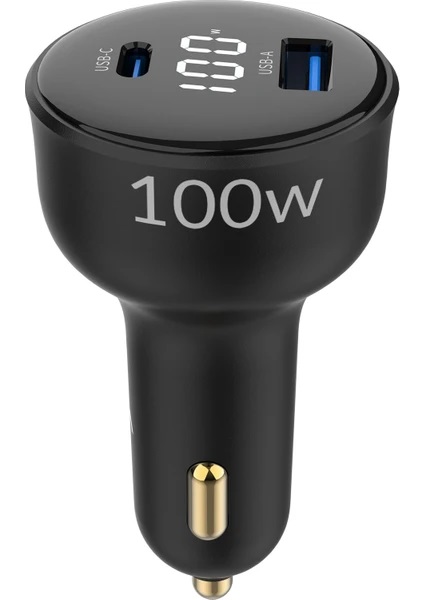 Juo 100W LED Ekranlı Type-C + Usb-A Araç Şarj Aleti Apple iPhone & Android & Notebook Araç İçi Şarj Cihazı