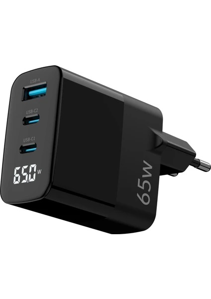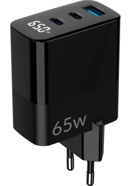 Juo 65W Gan LED Ekranlı Hızlı Şarj Cihazı 2 Type-C + Usb-A iPhone & iPad & Notebook Uyumlu Şarj Aleti
