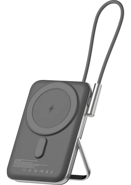 1 x Juo Magsafe Powerbank 10000mAh Standlı 20W Dahili Type-C Kablolu Hızlı Taşınabilir Şarj Cihazı Siyah