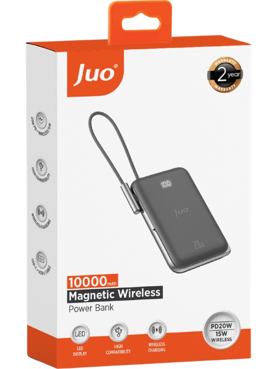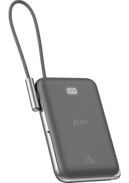 Juo JMP710 Manyetik Magsafe Standlı 10.000mAh 20W kendinden type-c kablolu taşınabilir şarj aleti (powerbank) ile ekstra güç kablosuna gerek duymadan akıllı telefon, tablet (Samsung, iPhone, Xiaomi, Huawei v.b) gibi cihazlarınızı rahatlıkla şarj edebilirsiniz. Cihaz üzerinde yerleşik olarak 20W çıkış gücüne sahip USB-C tip kablo bulunmaktadır. Dahili type-c kablo ile (Samsung, Xiaomi, Reeder, Huawei, Realme, Oppo, Poco, Redmi v.b) iPhone, android tablet telefon gibi type-c porta sahip cihazlarınızı 20W güç desteği ile hızlı şarj edebilirsiniz. Juo JMP710 aynı anda 3 cihaza kadar desteklemektedir. Manyetik Magsafe özelliği ile iPhone ve Android uygun cihazlarınızı kablosuz olarak şarj edebilirsiniz. Magsafe kablosuz şarj, dahili type-c kablolu şarj etmenin haricinde kutu içerisinden çıkan type-c to type-c kablo ile powerbankin yan tarafında bulunan USB-C porttanda 20W a kadar şarj işlemi sağlayabilirsiniz. Bu port hem powerbanki hemde akıllı cihazlarınızı şarj etmek için çift yönlü (giriş-çıkış) olarak kullanılmaktadır. Dahili kabloyu type-c porta takarak powerbankinizi yanınızda rahatça taşıyabilirsiniz. Juo JMP710 Magsafe Powerbankin çinko alaşım malzemeden üretilen standlı tasarımı cihazınızı kullanırken kolaylık sağlar; böylece hem şarj edebilir hem de videolarınızı izleyebilirsiniz. Yeni nesil akıllı çipler sayesinde yüksek güvenlik ve hızlı şarj imkanı sağlamaktadır. Lityum Polimer (Li-Po) bataryası ile uzun ömürlü şarj/deşarj döngüsü sağlamaktadır.