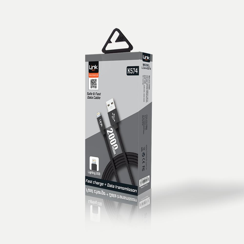 Örgülü kablo yapısı ve dayanıklı uçlarıyla dikkat çeken Lightning USB uyumlu K574 data ve şarj kablosu 2000 mm uzunluğa sahiptir. Kablonun siyah, gri, pembe, renkleri bulunuyor.