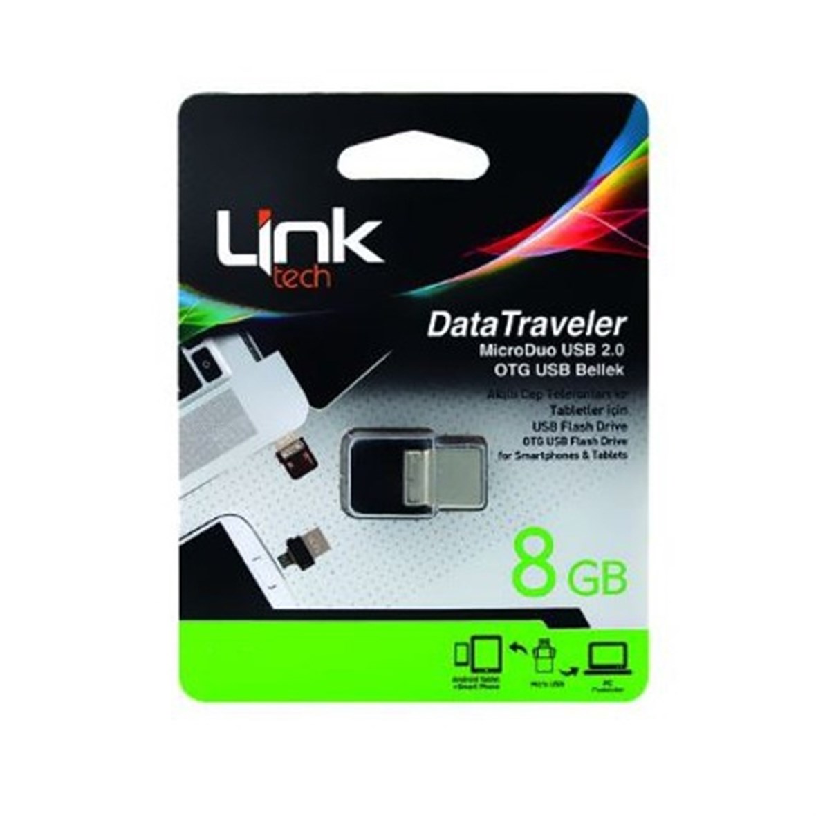 8GB Micro OTG Dual USB Bellek dayanıklı metal kasası ile kullanıcıların yeni cihazlarıyla gittikleri her yere güvenle yanlarında taşımalarını sağlar. Linktech OTG Flash Bellek hızlı veri aktarımı ve USB 2.0 ile geriye dönük uyuma sahip yedekleme sağlayan USB 3.0 flash özelliğiyle kaliteyi ve hızı bir arada sunuyor.