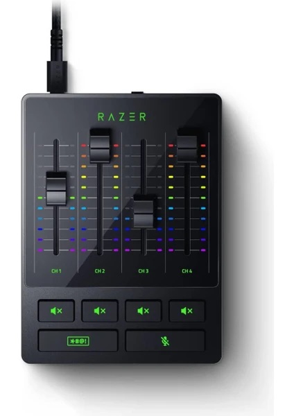 Sessiz düğmeli 4 kanallı arayüz Sesin her ayrıntısı üzerinde tam kontrol Mikrofon için 1 doğrudan kanal ve Razer Synapse ile atanan diğer 3 kanal mikrofon, oyun, müzik/sohbet ve sistem hacminin mükemmel karışımını sağlar ve her kanal ayrı ayrı ayarlanabilir veya sessize ayarlanabilir.