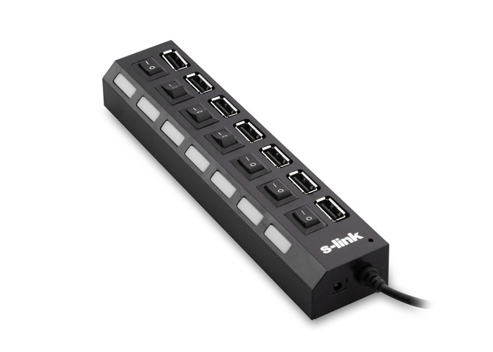 | S-Link SL-775; İstediğiniz zaman takıp çalıştırabilirsiniz, her hangi bir kurulum gerektirmez. 7 tane USB girişi (port) vardır. Her portun kendine özel anahtarı bulunmaktadır. Kilidi açık olan her porttan mavi led ışık çıkar. Böylece kilidin açık olup olmadığını anlayabilirsiniz. Hem şık hem kullanışlıdır. |