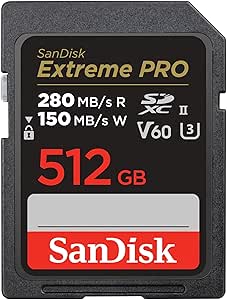 UHS-II SD hafıza kartı 512 GB gelişmiş MIL, çift yuvalı MIL ve sinema kameralarına sahip profesyoneller ve profesyoneller için idealdir (UHS-II, V60, U3, C10).