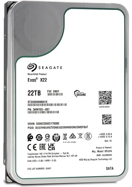 Seagate EXOS serisi, NAS (Network Attached Storage) sistemleri için özel olarak tasarlanmış yüksek performanslı sabit diskler sunar. ST22000NM001E modeli, piyasadaki en yüksek kapasiteli sabit disklerden biridir. 22TB depolama alanı ile büyük veri merkezleri, işletmeler ve ağ depolama çözümleri için idealdir.