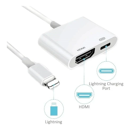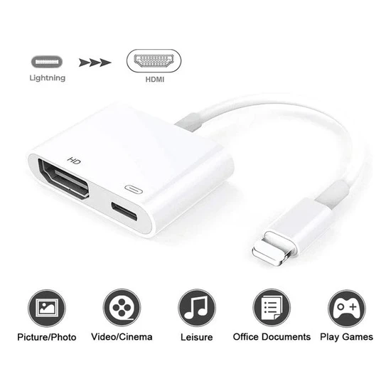 Daytona Lightning to HDMI adaptör, Hdmi portunun yanı sıra lightning konnektörü sayesinde, görüntü aktarırken cihazınızı şarj etmenize olanak sağlar.