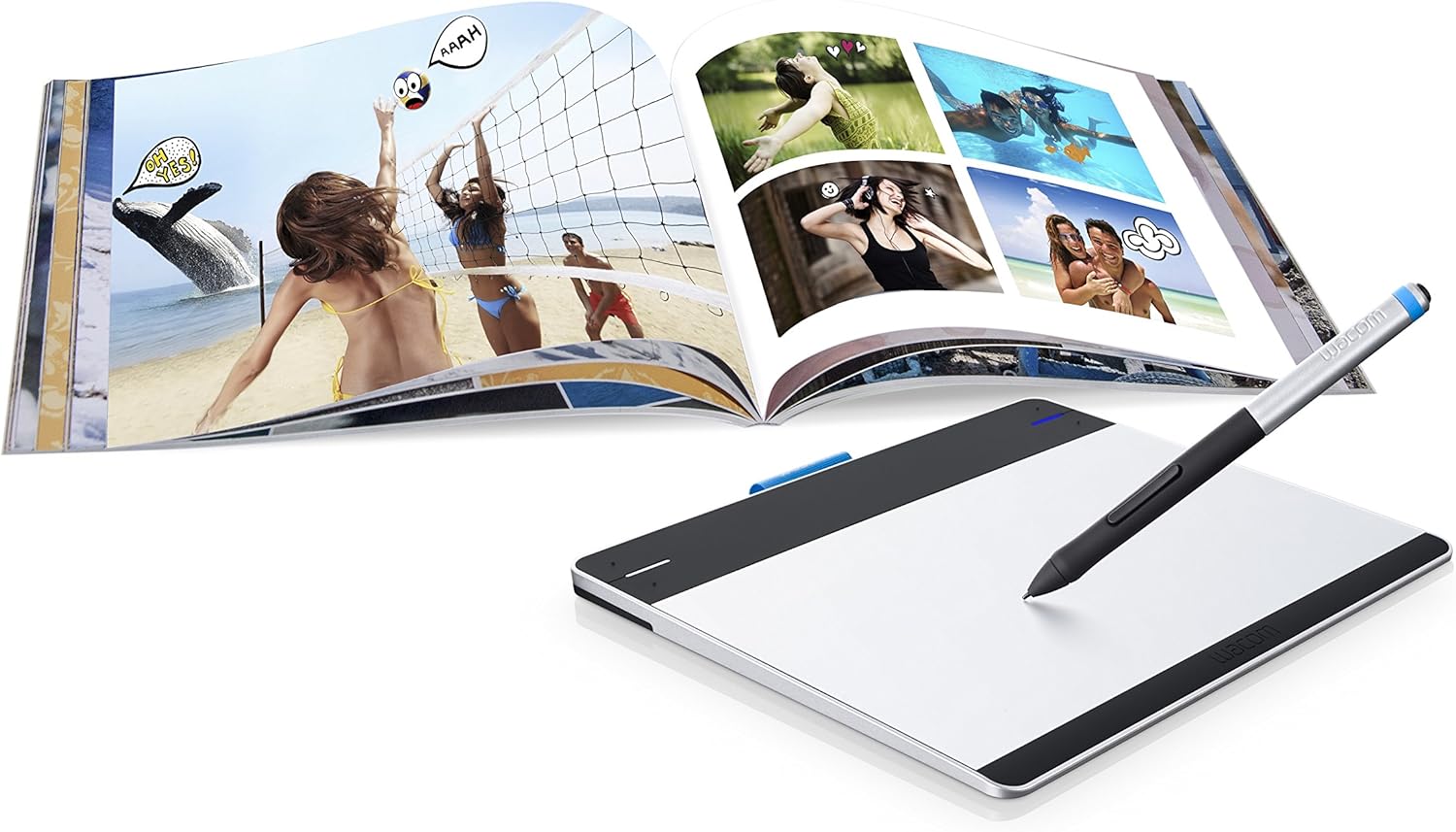 Basınca duyarlı Nib (1024 basınç seviyeleri), iki düğmeli pil ücretsiz, ergonomik Intuos kalem, kalem tutacağı ve renkli halka, Değiştokuş edilebilirler,