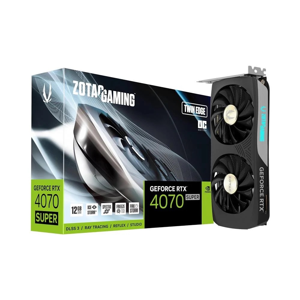 ZOTAC GAMING GeForce RTX 4070 SUPER Twin Edge OC 12GB GDDR6X, NVIDIA Ada Lovelace mimarisine ve aerodinamikten ilham alan tasarıma sahip kompakt ve güçlü bir grafik kartıdır. Azaltılmış çift yuva boyutuyla, en son çıkan oyunlarda etkileyici kare hızı ve performansa sahip bir SFF oyun bilgisayarı oluşturmak isteyenler için mükemmel bir seçimdir.